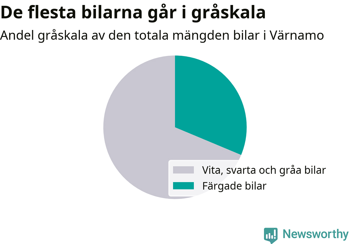 En bil i gråskala är i dag vanligast i samtliga av landets kommuner, och i snitt har 62 procent av alla bilägare totalt har fallit för trenden. Av totalt 23 742 bilar i Värnamo bär 16 303 en svartvit nyans. Det motsvarar 69 procent, vilket alltså är högre än rikssnittet på 62 procent.