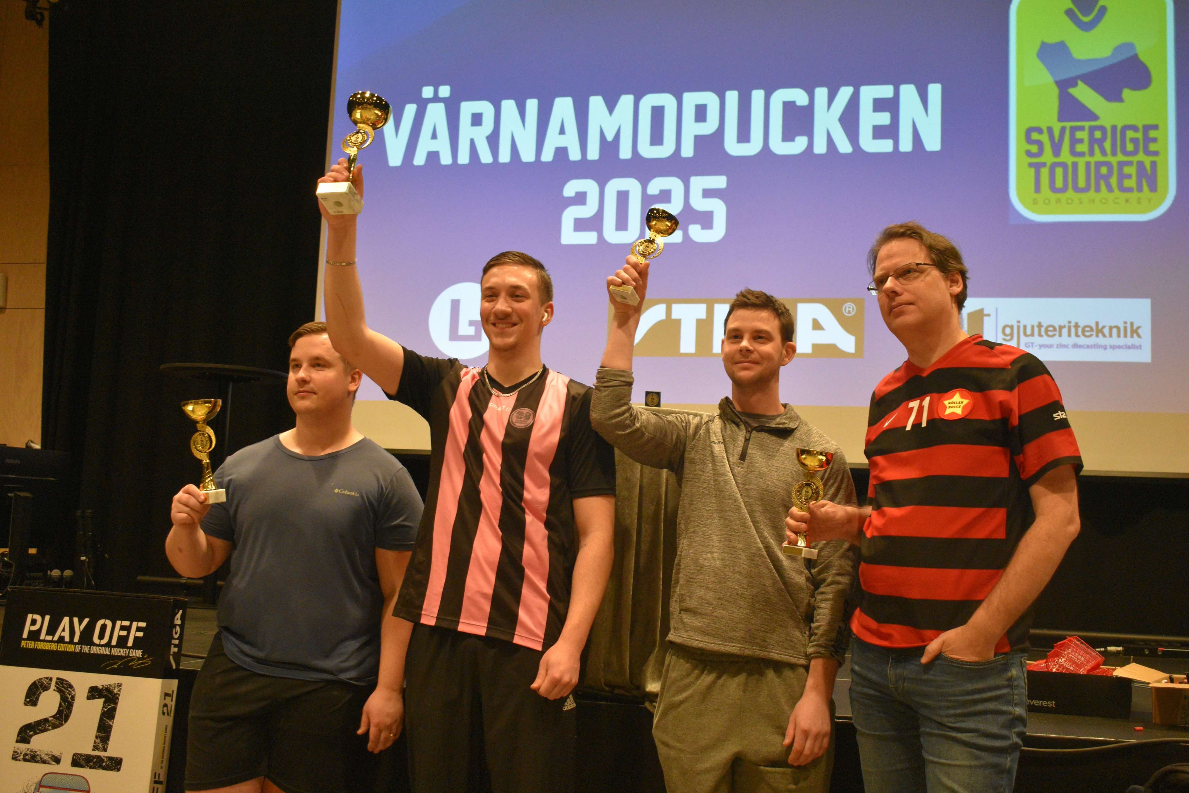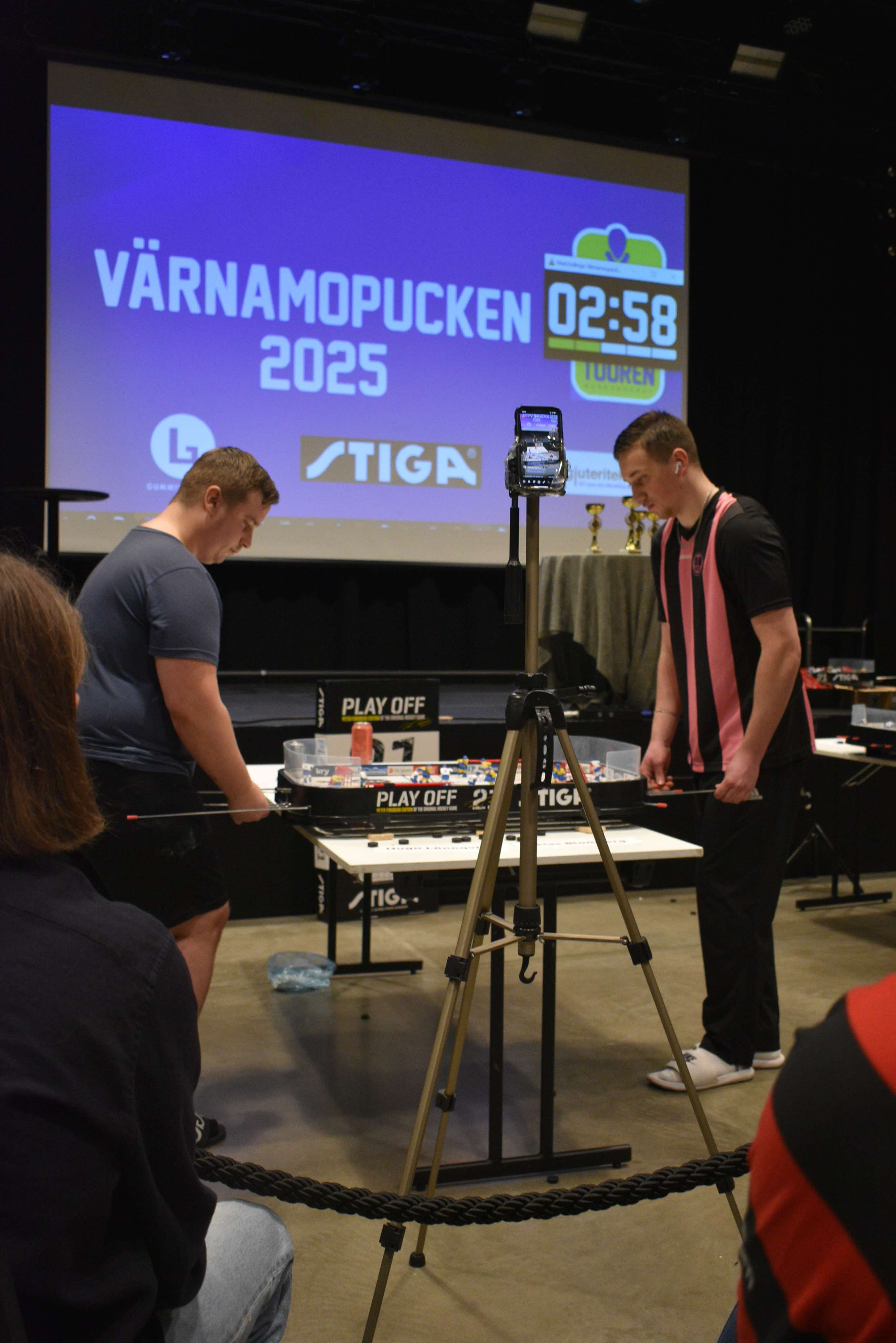 Värnamopucken kallas den berömda bordshockeytävlingen som hålls i Gummifabriken i Värnamo. Detta året vann Niklas Blomberg av de 49 deltagande.
