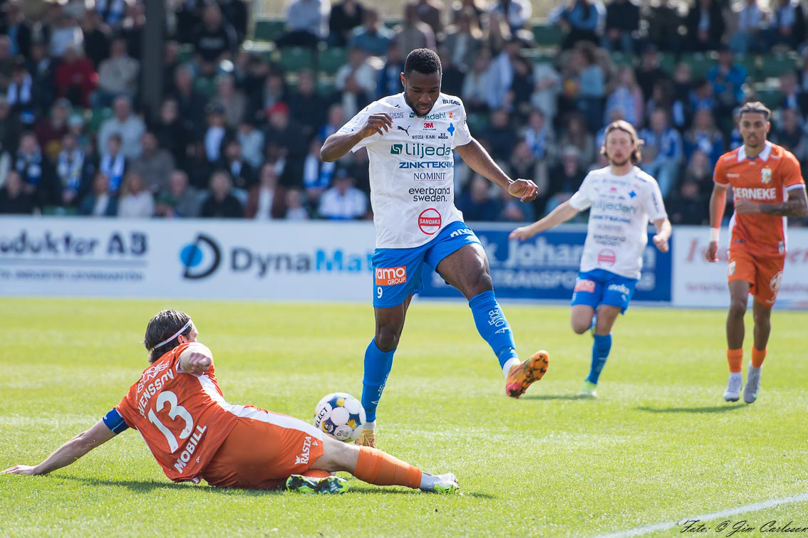 Efter ett fint inlägg signerat Pascal Lundqvist så når Max Fenger högst och nickar in ledningsmålet utom räckhåll för Viktor Andersson i hemmamålet.