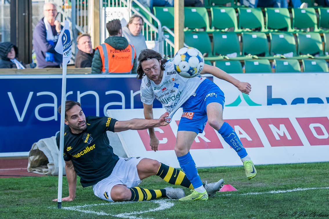 Gästerna tog ledningen i slutet på första halvlek genom Mads Tychosen som dök upp bakom Axel Björnström på bortre stolpen efter ett inlägg från Besirovic.