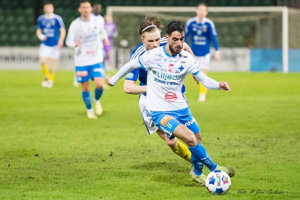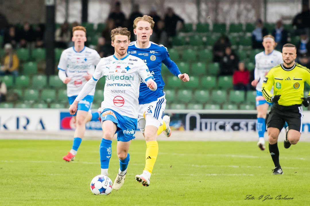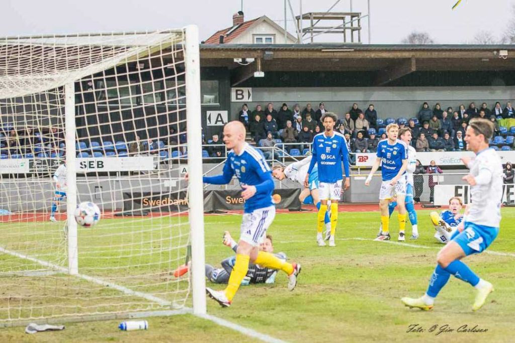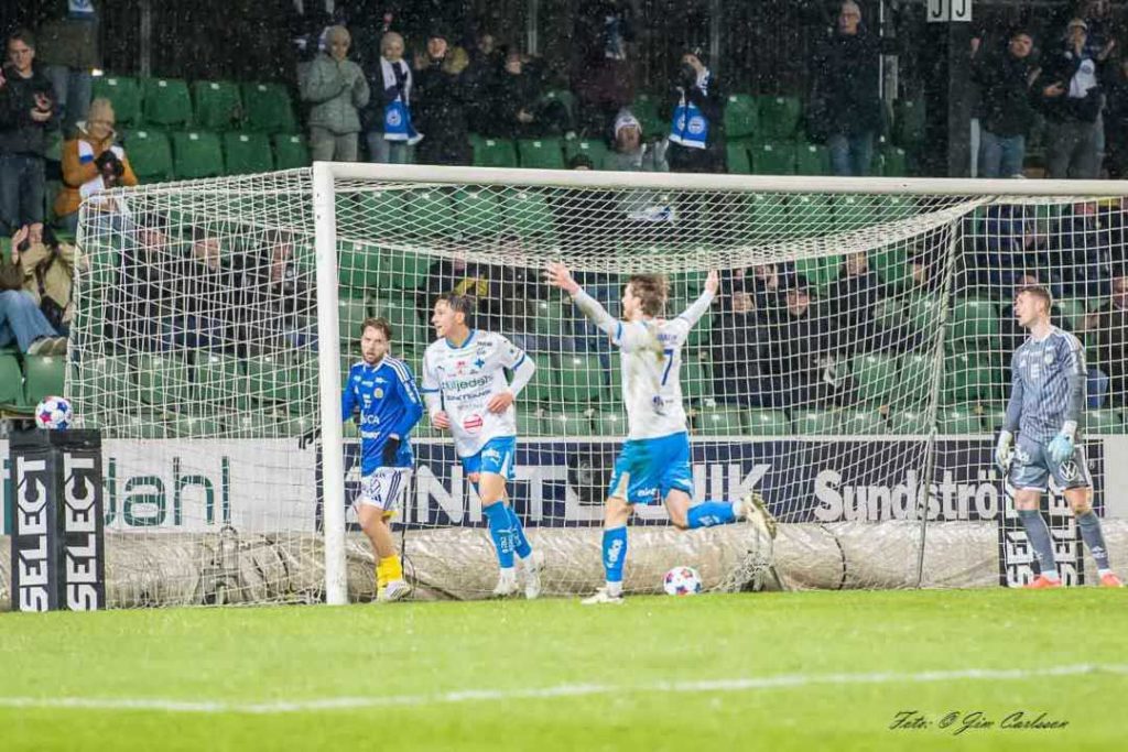 Inbytte Sigge Jansson stormar fram på sin kant och är på väg att placera in bollen men väljer istället att servera Kai Meriluoto öppet mål och låta den 23-årige finnen noteras för sitt första mål för säsongen.