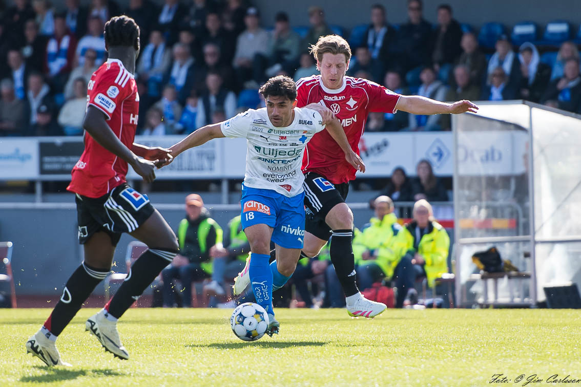 Istället är det gästerna som tar ledningen genom Sebastian Jörgensen som vackert skruvar in bollen i bortre hörnet.