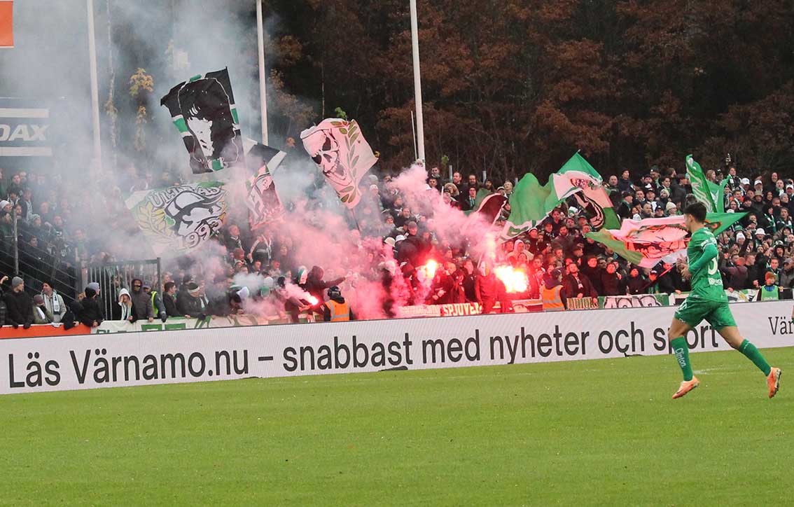 Pyroteknik är fortfarande vanligt förekommande under matcherna inom svensk elitfotboll och innebär en säkerhetsrisk för besökare och egendom. Problematiken med bruk av icke tillståndsgiven pyroteknik, besökare som maskerar sig och inkastade föremål är fortsatt omfattande. Det här har även skett vid matcher på Finnvedsvallen i Värnamo.