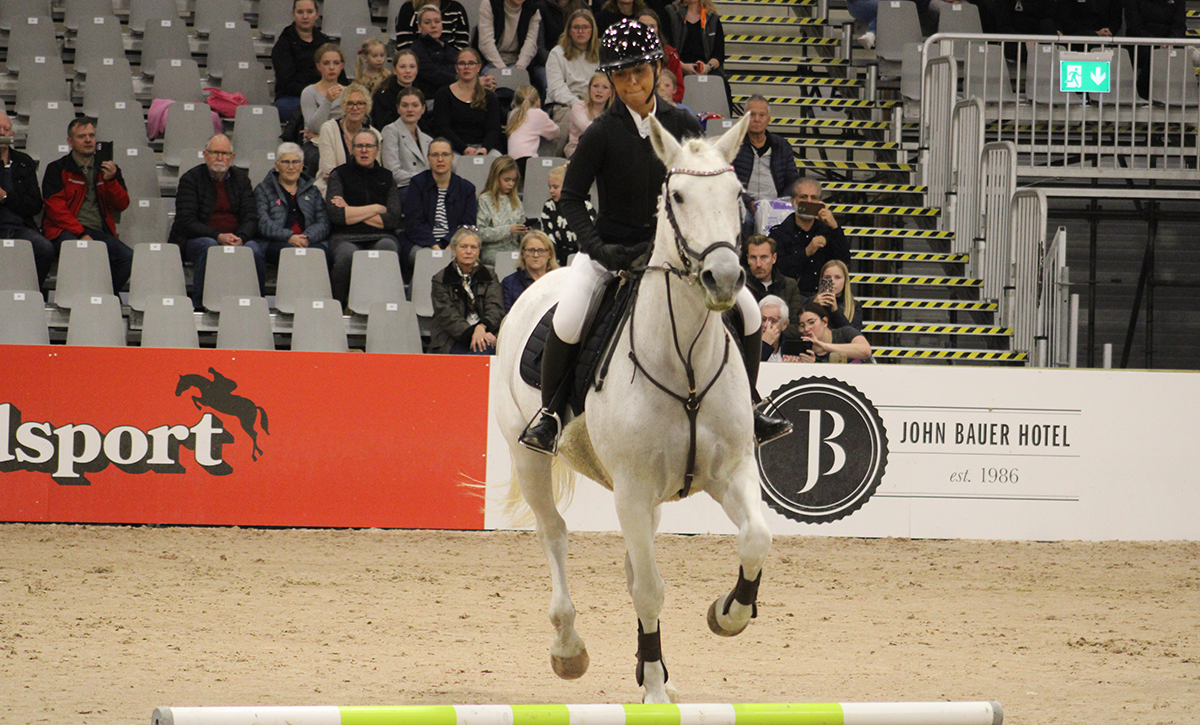 – Det är ju inte riktigt en sån här arena vi brukar rida på när vi är på ridskolan. Men jag hade mest fokus på Hera och vi pumpade upp oss och försökte mer göra det till en rolig upplevelse. Hon var uppmärksam på olika saker, det var ovana ljud i början. Men sedan när vi kom igång så brydde hon sig inte. Hon är ganska ”cool” av sig. Hon tyckte om att tävla, berättar hon om hästen Hera.