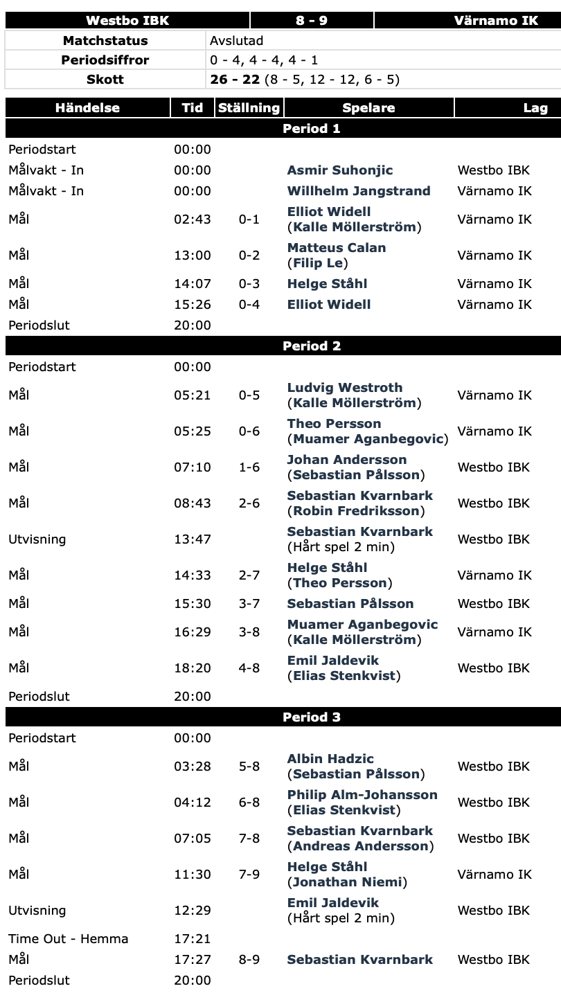 Trots en ledning med 6–0 var det nära att Westbo kommit ikapp. Till slut blev det ändå VIK-seger med 9–8.