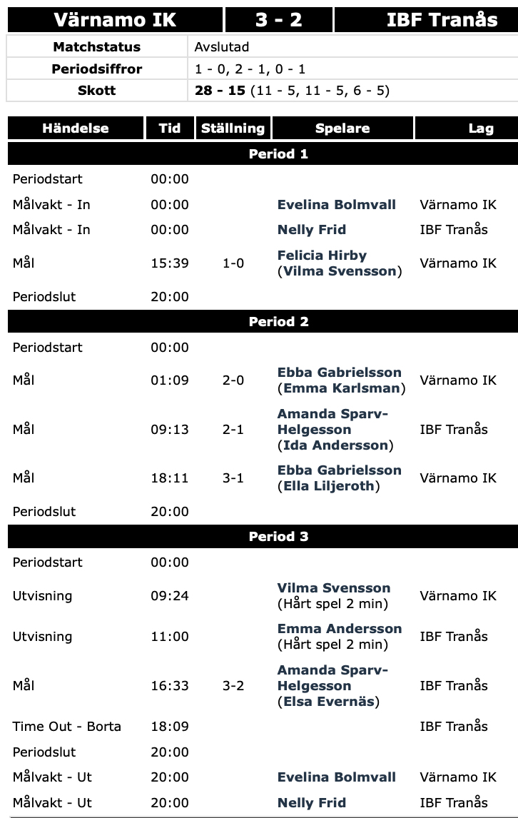 Värnamo bortavann med 7–2 men det blev ingen enkel VIK-seger trots hemmaplan. Felicia Hirby gjorde 1–0 och Ebba Gustavsson 2–0 och 3–1. Sent i matchen kom reduceringen till slutresultatet 3–2.
