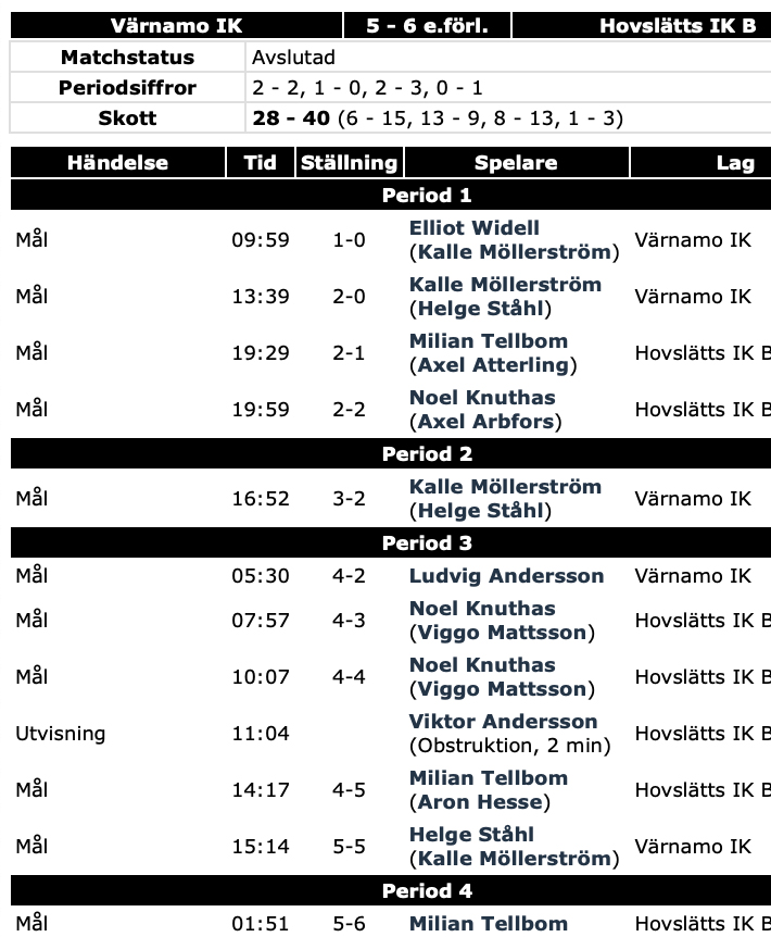 Hovslätt leder serien med tio poäng. Värnamo ligger sist med blott en enda poäng och den kom just i kvällens match. En poäng mot serieledaren får trots allt räknas som en framgång.