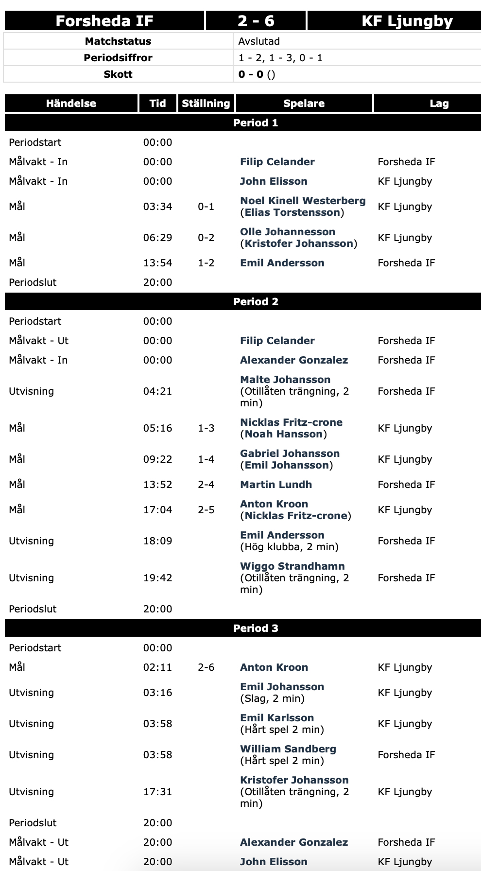Det blev förlust med 2–6.