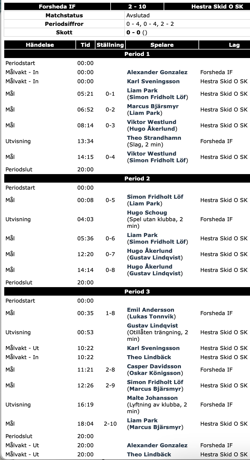 Noterbart är i alla fall att Forsheda spelade 2–2 i den tredje perioden.