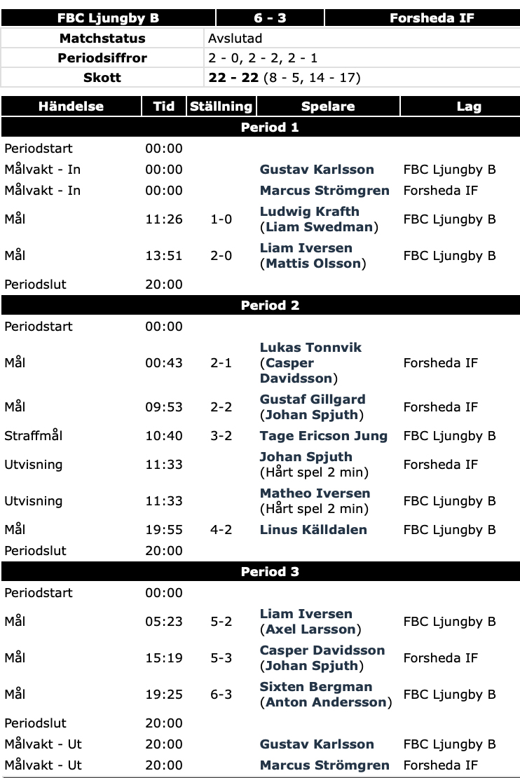 Forsheda IF föll i bortamötet med FBC Ljungby B. Det blev 3–6.