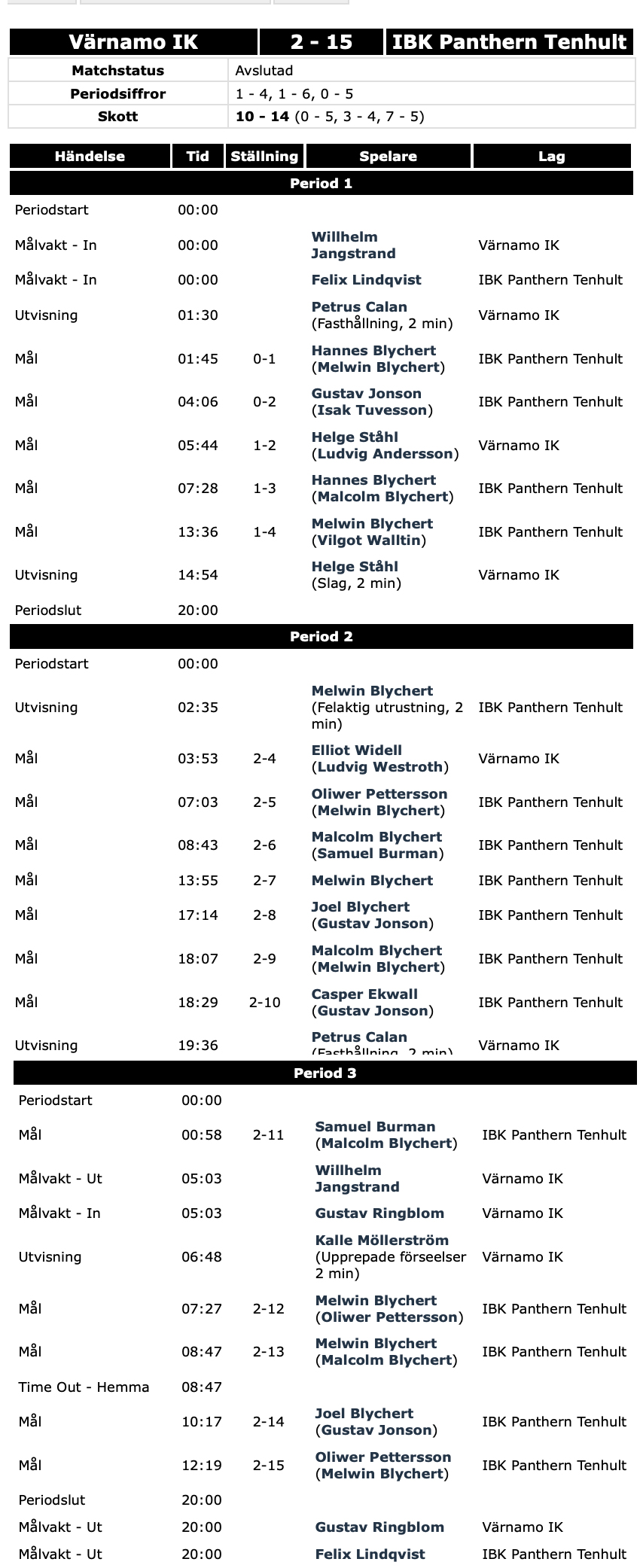 Dwt blev 2–15 i mötet med Panthern från Tnehult.