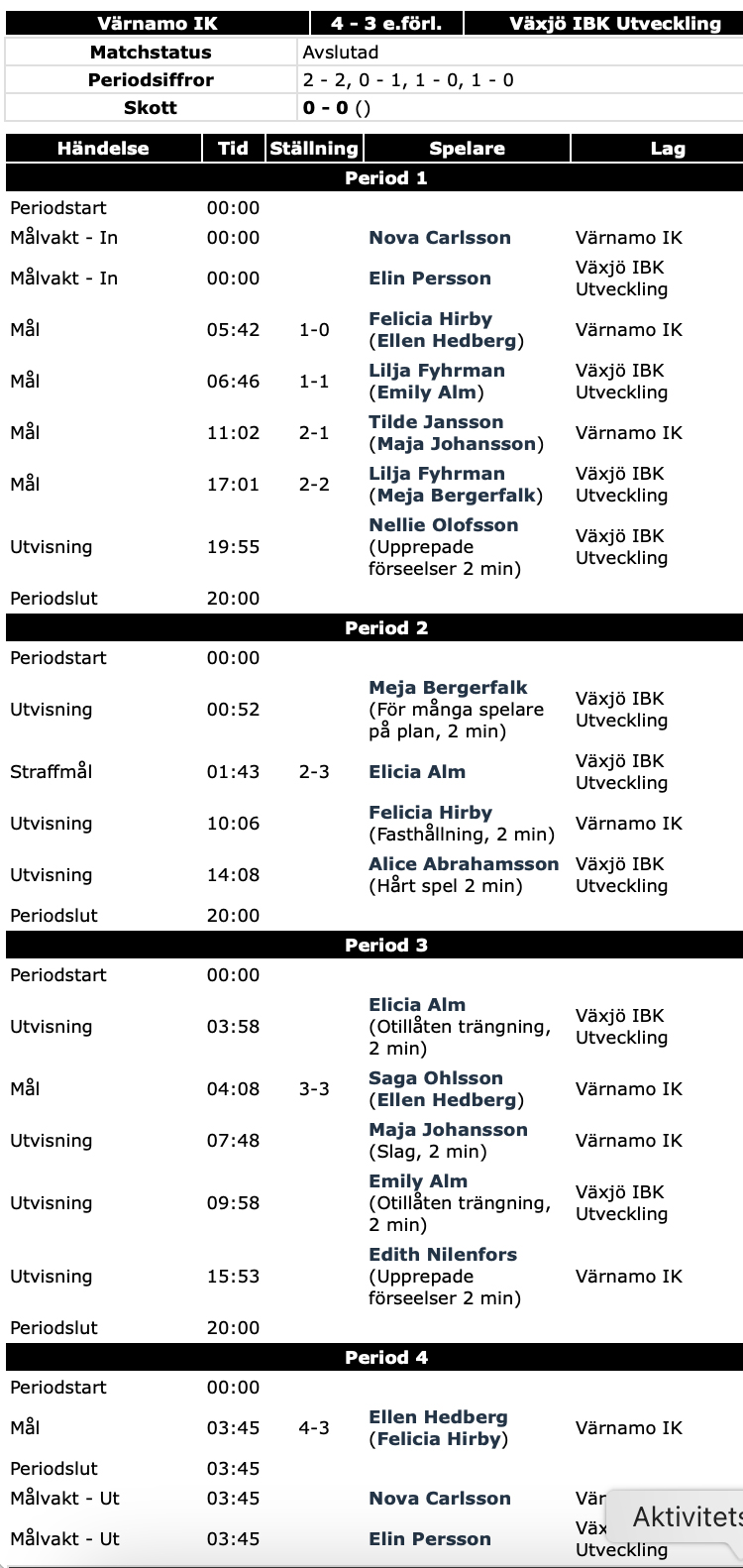 Värnamo IK lyckades vinna hemmamötet med Växjö IBK U. Uppdaterat.