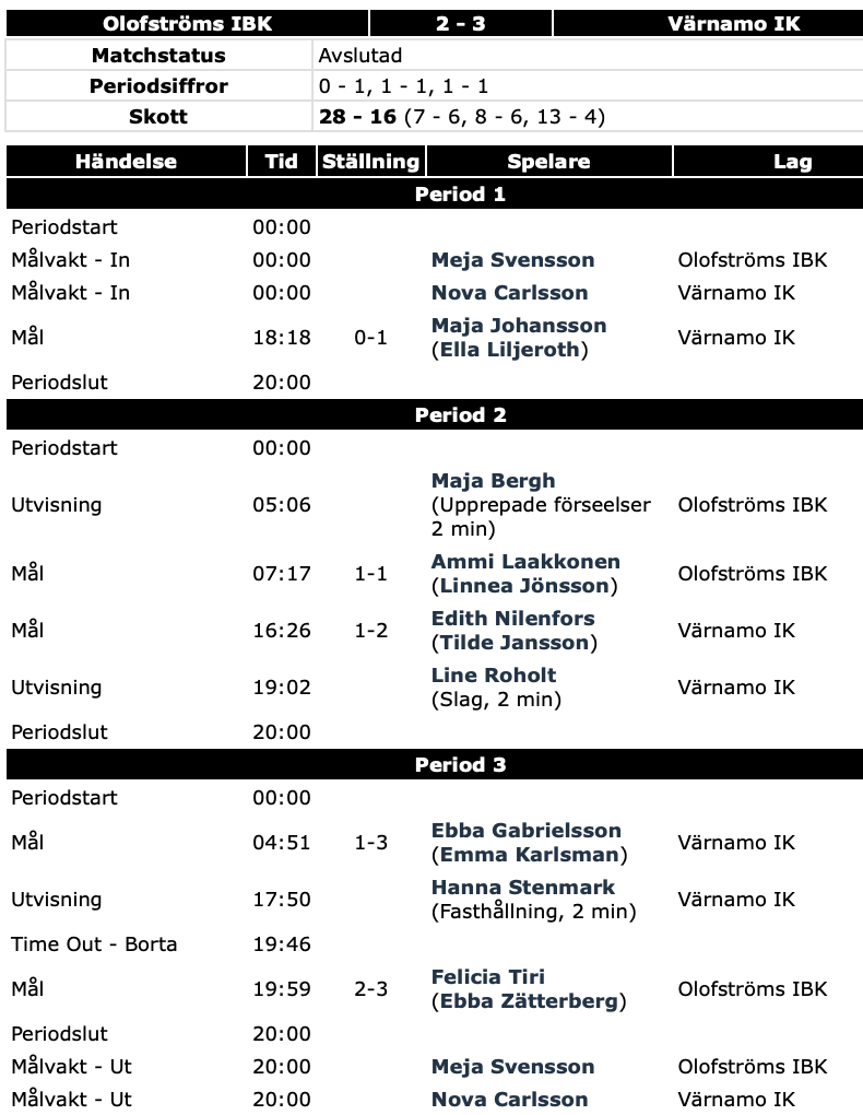 Det blev 3–2 i bortamötet med Olofström. Värnamo hade 3–1 men i i sista sekunden kom en reducering.