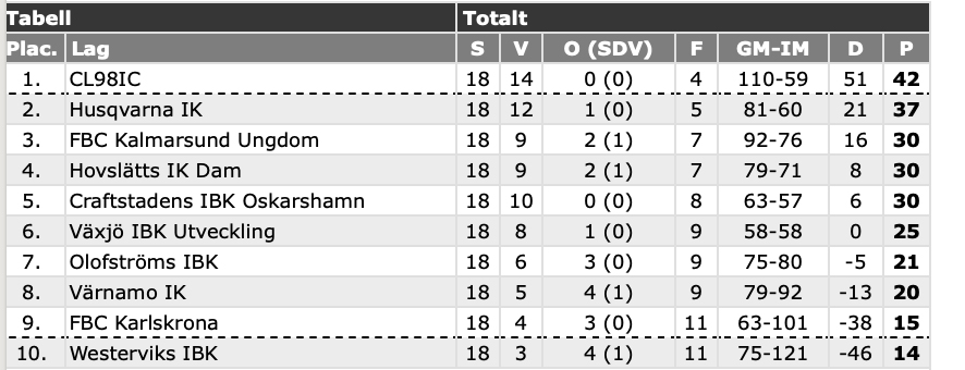 Värnamo har bland att givit i denna serie. Man hade nog hoppas på en bättre placering i damettan. till slut blev det en åttondeplats och säkrat kontrakt.
