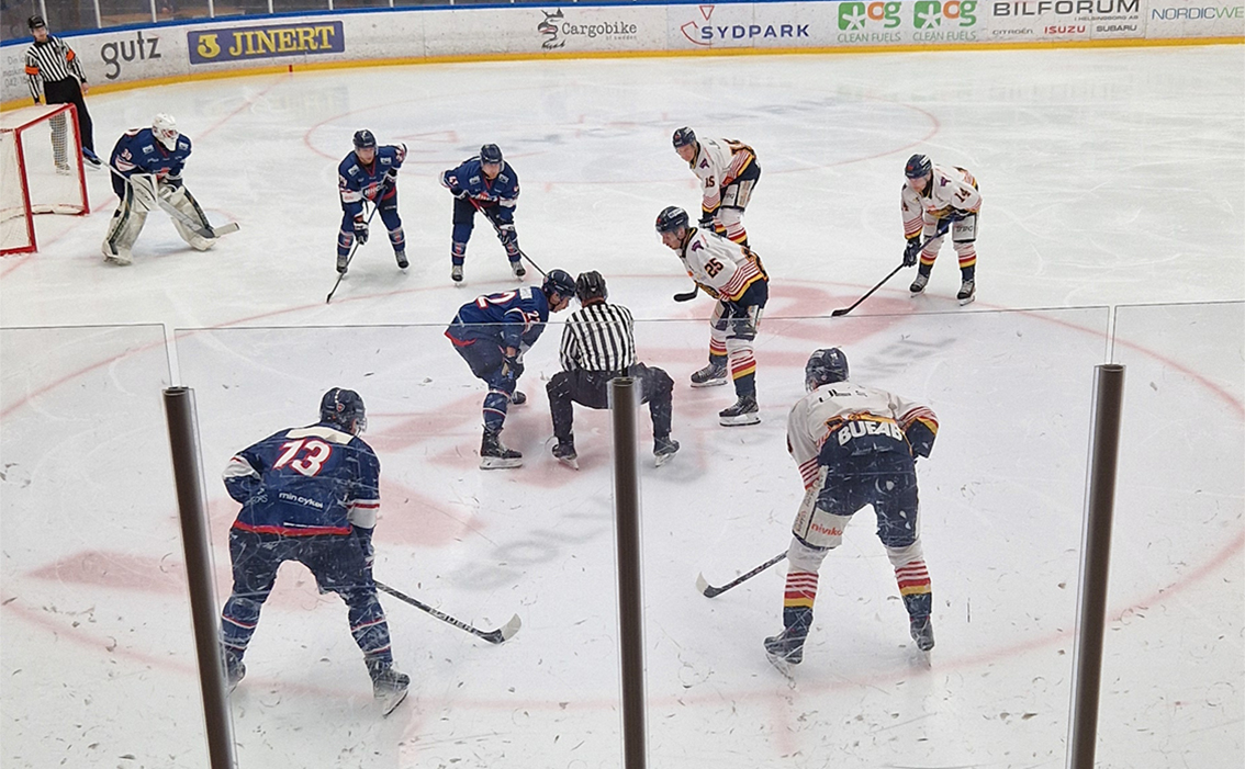 Det blev istället krampaktigt och relativt händelsefattigt. Det fanns dock vissa stunder, tendenser, till att försöka få längre spel i anfallszon. Och det skulle trilla in ett mål. I slutet av första perioden var det Värnamospelaren Ludvig Seydlitz som gjorde det.