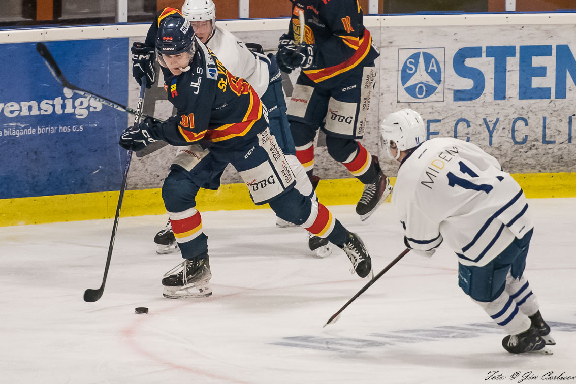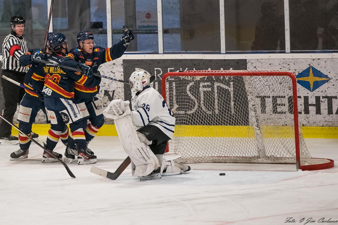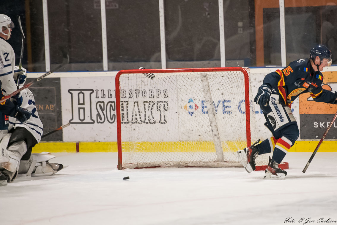 I andra perioden så kvitterade VGIK tidigt genom Ludvig Seydlitz men Jonstorp fick återigen ta ledningen endast några minuter senare. David Good gjorde sedan det sista målet under ordinarie tid eftersom 3–3 stod sig hela sista perioden. Sex minuter in i förlängningen avgjorde Jonstorp genom ett skott som träffade målvaktens benskydd och sedan in i mål.