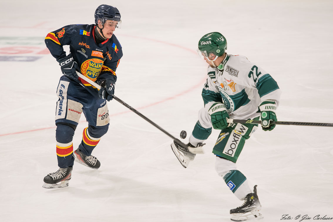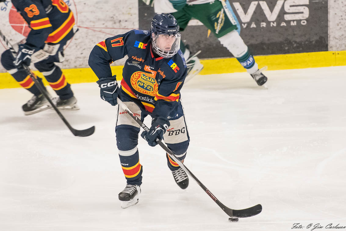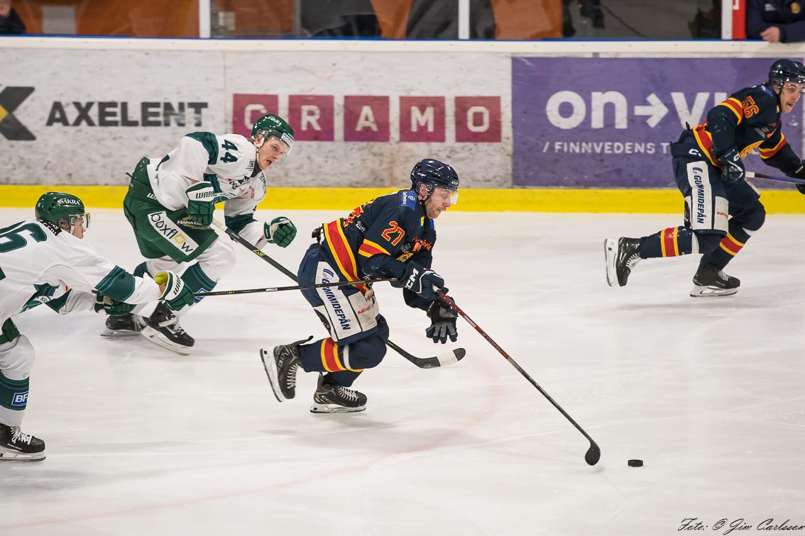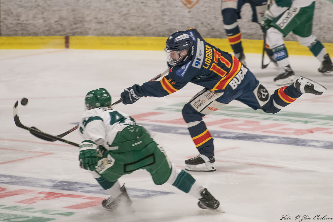 – I andra perioden är det fortfarande lite upp och ner. Vi jobbar hårt, men det är inte fullt synkat. Det är mycket kamp och individuella prestationer som håller oss kvar. Och där måste jag lyfta målvakten Jonathan Petersson – när Jonte storspelar ger han oss chansen att vara med. Han kliver fram i avgörande lägen, tar några riktigt viktiga räddningar och inger ett lugn i laget. Det betyder mycket.