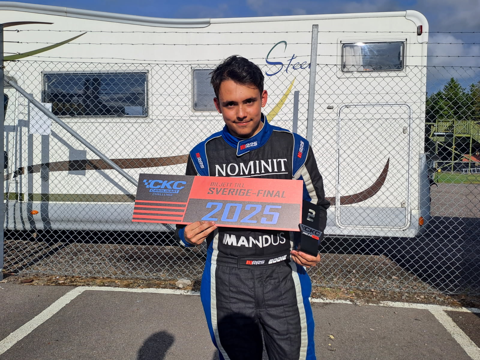 Finalerna körs med rullande start. Värnamoföraren fick till en bra start och han tog hand om tredjeplatsen ut ur den första kurvan, en placering som han behöll loppet igenom. När alla poängen från tidskval, förfinal och final räknades ihop stod det klart att Eddie slutade på andraplats totalt, vilket innebär att han säkrade en biljett till Sverigefinalen i Helsingborg i augusti. Där gör han lillebror Alex Ramírez Eriksson sällskap, som säkrade sin biljett efter en tredjeplats i Caroli Kart Challenge-loppet i Lessebo tidigare i år.