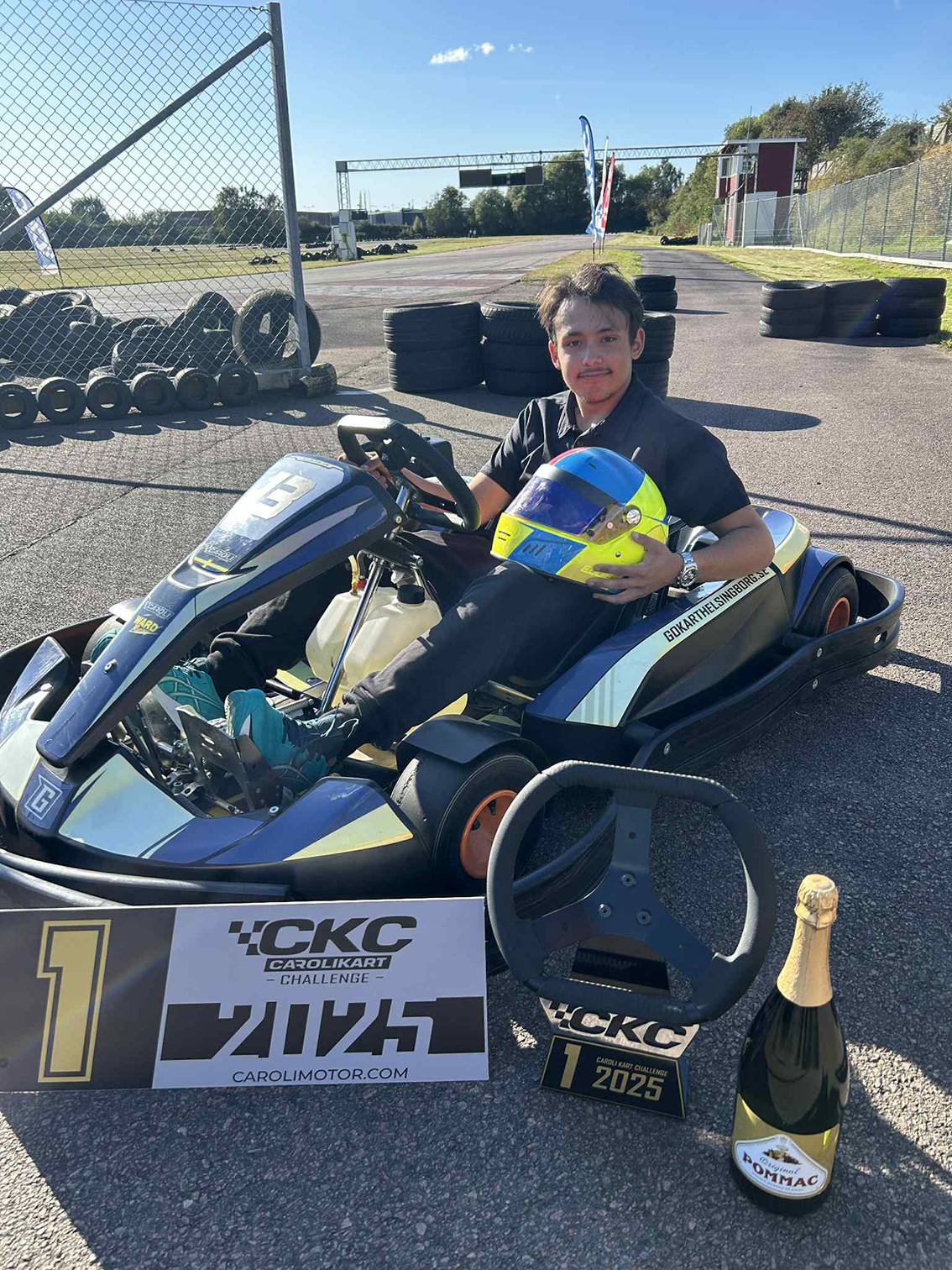 – Heat ett och två gick bra. Jag vann båda heaten och jag hann även se hur några andra körde på banan. Det hjälpte mig jättemycket till grande finale. Under kvalet till finalen fick jag en väldigt dålig kart men jag klarade ändå att knipa en femte plats och en direkt plats till grande finale. Grande Finale var på två heat, först en vanlig körning med 18 andra förare och andra heatet på fel håll på banan. Jag vann första finalen och andra blev jag trea. När totalpoängen räknades ihop stod det klart att jag vann hela CKC SM Sverige med två poäng till andra platsen. Jätteroligt att kunna köra här och vinna. Nu har jag en till seger i min karriär, avslutar Eddie.